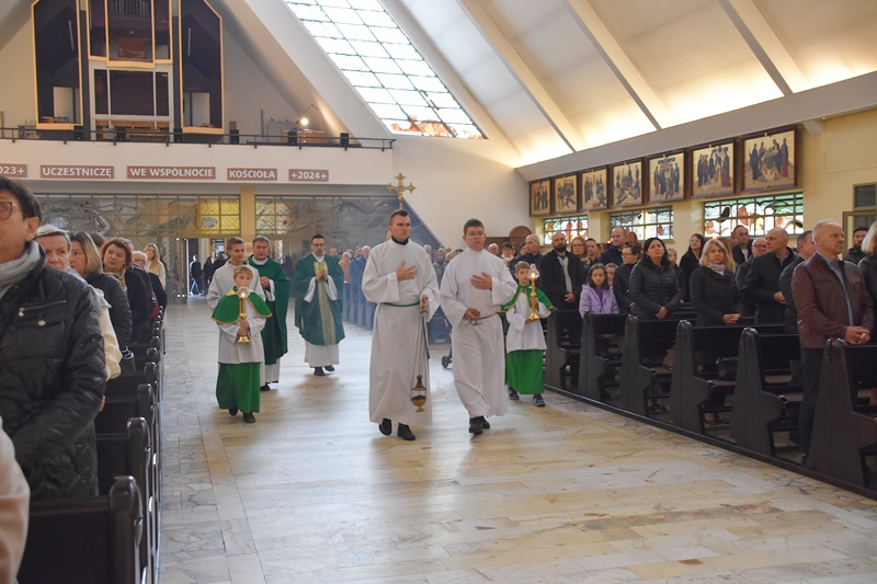 W ubiegłą niedzielę na Mszy Św. o godz. 10:30 skladaliśmy dobremu Bogu dziękczynienie za dar życia zakonnego ks. Przemysława Króla SCJ. Na zakończenie Eucharystii przedstawiciele naszej parafii na czele z ks. Proboszczem złożyli ks. Przemysławowi serdeczne życzenia.
